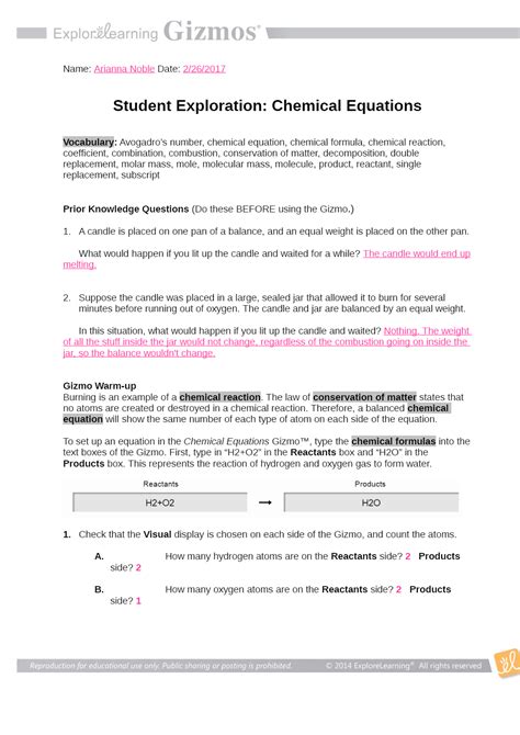 Read Chemical Equations Gizmo Answer Key Kindle Editon